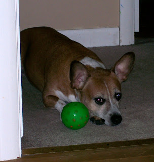 This is the look I get when I'm making cards or surfing on Splitcoast...aka "not playing ball with Gracie."If "the look" doesn't work, she progresses to whining, incessant squeaking, or the oh-so-subtle push of the ball across the room.